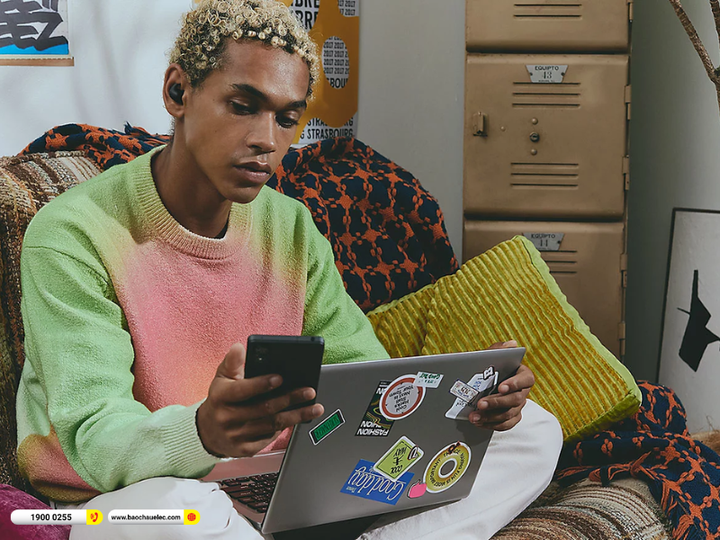 Một điểm cộng lớn là tai nghe có thể kết nối đồng thời với hai thiết bị. Ví dụ, bạn có thể vừa nghe nhạc trên laptop vừa sẵn sàng nhận cuộc gọi từ điện thoại và tai nghe sẽ tự động chuyển đổi linh hoạt giữa các thiết bị.