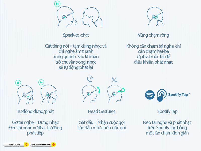 Không dừng lại ở đó, tai nghe còn hỗ trợ điều khiển bằng cử chỉ đầu. Bạn có thể gật đầu để nhận cuộc gọi, hoặc lắc đầu để từ chối, rất thích hợp khi đang di chuyển hoặc tay bạn đang bận việc khác.