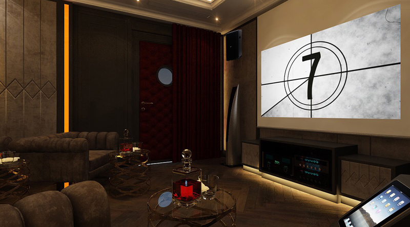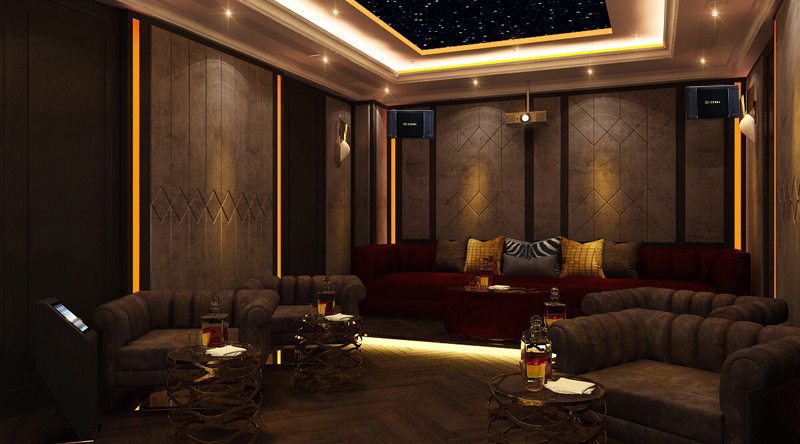 1. Thiết kế nội thất phòng xem phim (bao gồm tiêu âm, tán âm, bàn ghế, trang trí)