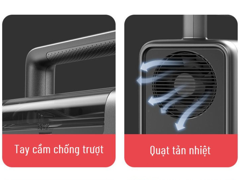 Thiết bị còn có tay cầm tích hợp chắc chắn, giúp cho người dùng dễ dàng xách tay, đặt trong balo hoặc cốp xe. Màu sắc xám titan mang lại vẻ hiện đại, mạnh mẽ và chuyên nghiệp, phù hợp cho cả dân kỹ thuật lẫn người dùng cá nhân.
