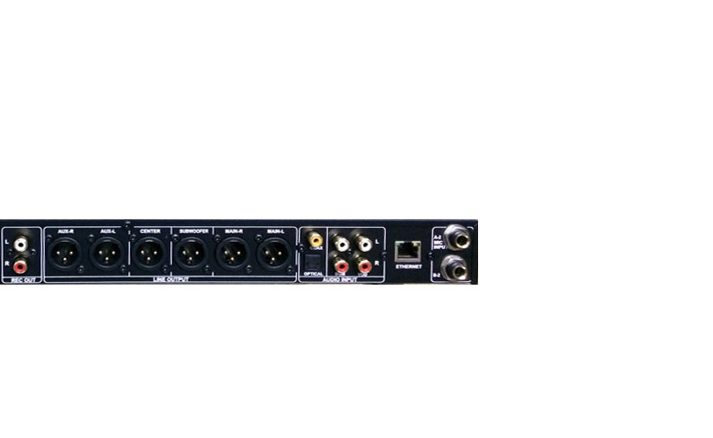 Mặt sau của vang số BIK 8000 là nơi bố trí các cổng kết nối thông dụng, cho phép phối ghép nhiều thiết bị âm thanh khác nhau.
