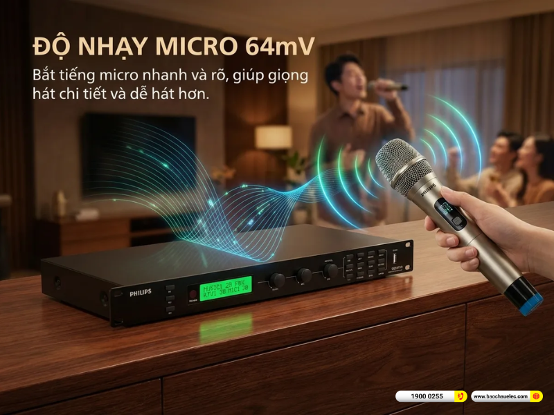Trong hệ thống karaoke gia đình, đây là yếu tố rất quan trọng vì nhạc nền không chỉ cần mạnh mà còn phải cân bằng để không lấn giọng micro. Một vang số có độ lợi âm nhạc phù hợp sẽ giúp tiếng nhạc sống động hơn mà vẫn giữ được sự dễ chịu khi nghe lâu.