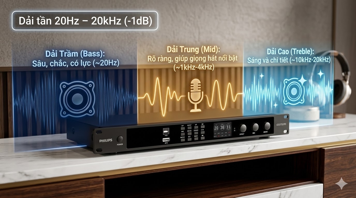 - Dải trung (Mid): rõ ràng, giúp giọng hát nổi bật.